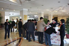 下午1:00客戶們陸續(xù)入場(chǎng),我們的工作人員指導(dǎo)客戶有序簽到