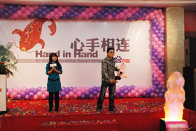陽(yáng)光絢爛,暖暖的冬風(fēng)輕拍著臉蛋,心情格外的爽快。2008年12月20日,“心手相連”百度客戶答謝會(huì)在鹽城山青水秀綠色生態(tài)美食園隆重舉行,200多人的會(huì)場(chǎng)坐無(wú)虛席!此次會(huì)議可謂“眾星云集”,泰州名主持小柏?fù)?dān)任此次會(huì)議的主持,我們也有幸邀請(qǐng)到百度客服經(jīng)理張鵬擔(dān)任此次會(huì)議的主講。午宴開始前百度渠道部經(jīng)理晟皞的祝酒詞,百度市場(chǎng)部經(jīng)理李方巖的“友情客串”,為此會(huì)議的舉辦增色不少。
