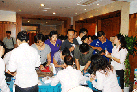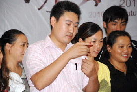 2010年9月19日鹽城瀛洲賓館,歡慶的樂曲喜悅而嘹亮,“緣”月中秋-2010百度中秋客戶答謝會的宣傳橫幅高高懸掛在酒店門庭。下午14:00思科的員工分列在酒店大廳歡迎前來參加會議的嘉賓。在引導員的帶領(lǐng)下,嘉賓們陸續(xù)來到簽到處簽到。