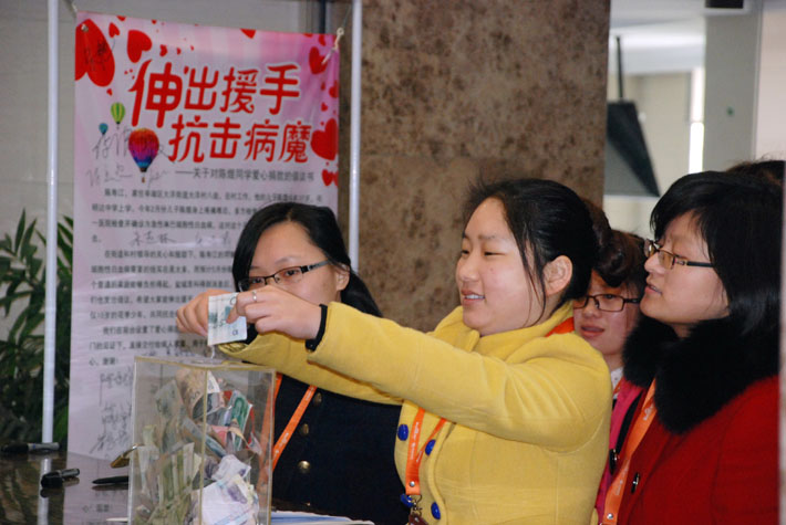 此次活動捐得的款項(xiàng)將在有關(guān)部門的見證下,直接交付給病人家屬,用于疾病治療。通過此次愛心捐贈活動,希望社會有愛心的人士也能夠獻(xiàn)出自己的愛心,讓陳煜同學(xué)能夠感受到社會大家庭的溫暖,讓我們共同祈禱與祝愿,一起傳遞希望和堅(jiān)強(qiáng)?;蛟S我們的愛心只是愛的江河中那小小的一滴,但我們相信大家的關(guān)心和友愛定能幫助陳煜同學(xué)和他危難的家庭戰(zhàn)勝眼前的困難!
